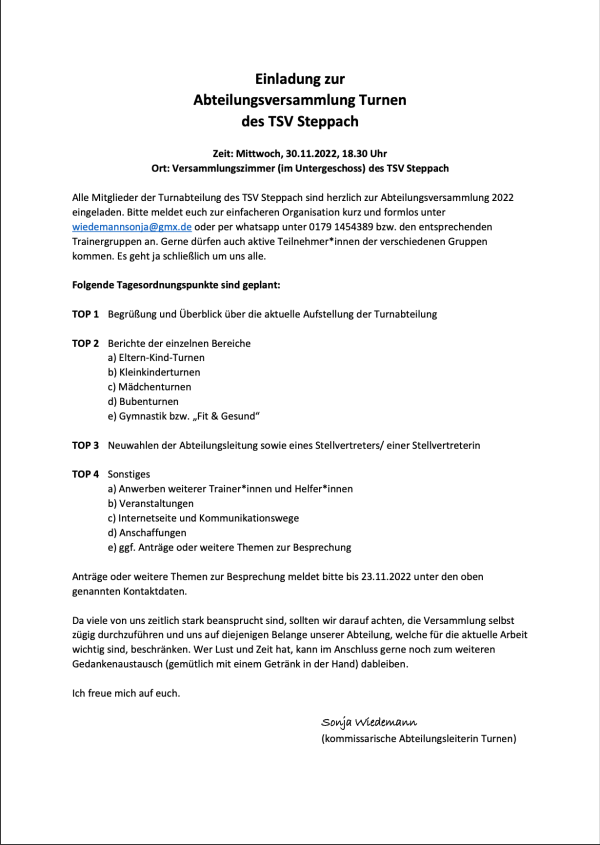 beim TSV Steppach e.V. gegr. 1888!