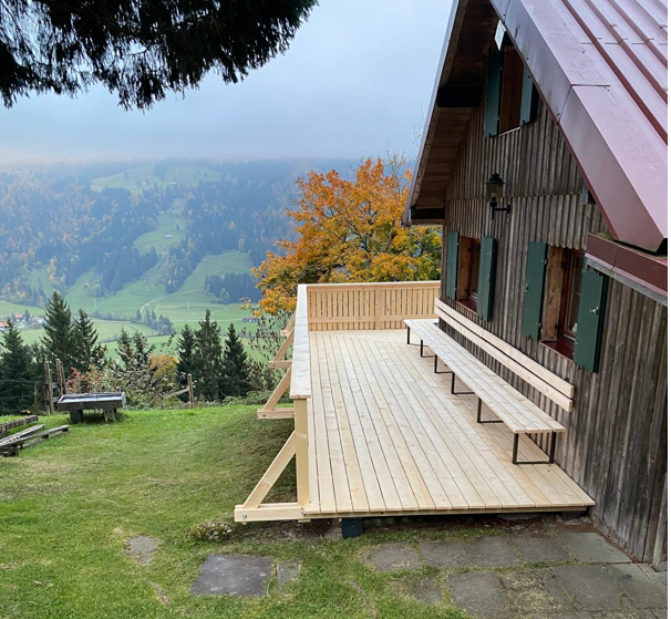 Gemütliche Selbstversorgerhütte in Wiedemannsdorf bei Oberstaufen mit Talblick – ideal für Vereinsausflüge, Familien & Gruppen bis 20 Personen. 4-, 6- und 9-Bettzimmer, zwei Bäder, Wohnstube mit Kaminofen, voll ausgestattete Küche; perfekter Ausgangspunkt zum Wandern, Biken & Wintersport.